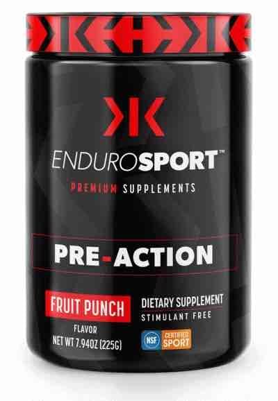 ENDUROSPORT'S PREMIUM PRE-ACTION is a caffeine-free, sugar-free, NSF Certified for Sport, daily supplement formulated with high-quality, patented ingredients. It's been tested and proven to increase energy levels, sharpen mental focus, boost strength and endurance, reduce fatigue, and decrease recovery time.